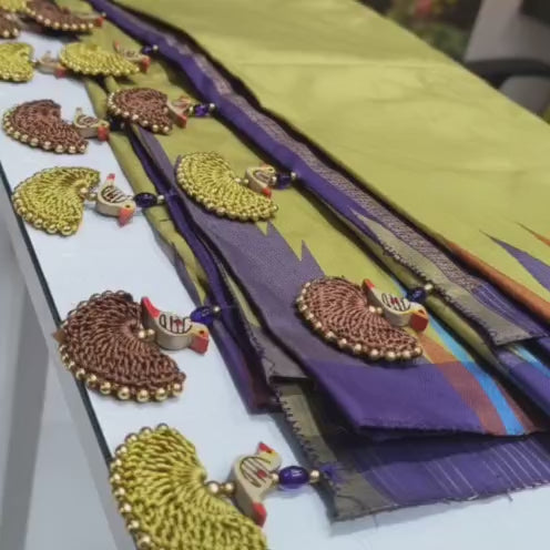 Elevate your saree with our exquisite handmade tassels, meticulously crafted to complement every occasion. From intimate gatherings to grand celebrations, these versatile designs add graceful movement and sophisticated flair to your pallu. Each tassel is thoughtfully created to enhance traditional elegance while bringing contemporary style to your festive wardrobe. Perfect for weddings, festivals, and special events, our collection ensures your saree makes a memorable statement.